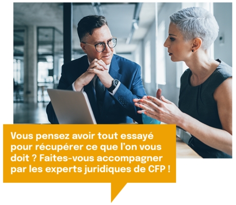 Au CFP, nous faisons tout pour préserver la relation commerciale – entre le débiteur et notre client – et éviter les voies judiciaires, souvent fastidieuses et longues en termes de délais de recouvrement. Aussi, pour vous permettre de vous faire régler vos factures impayées, les équipes CFP utilisent des services et des outils éprouvés :
